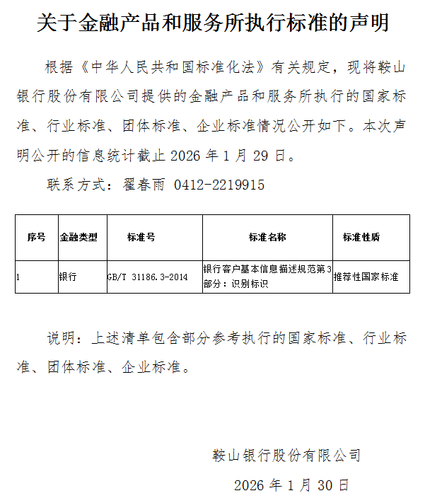 当前位置:首页 > 最新公告 >关于金融产品和服务所执行标准的声明