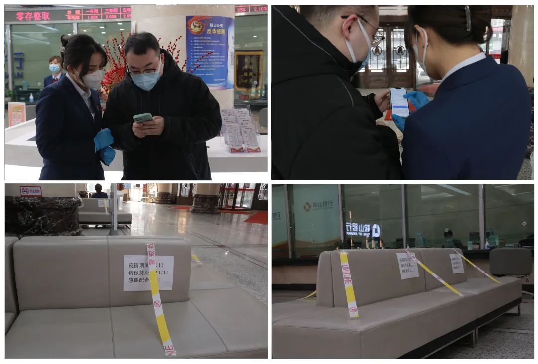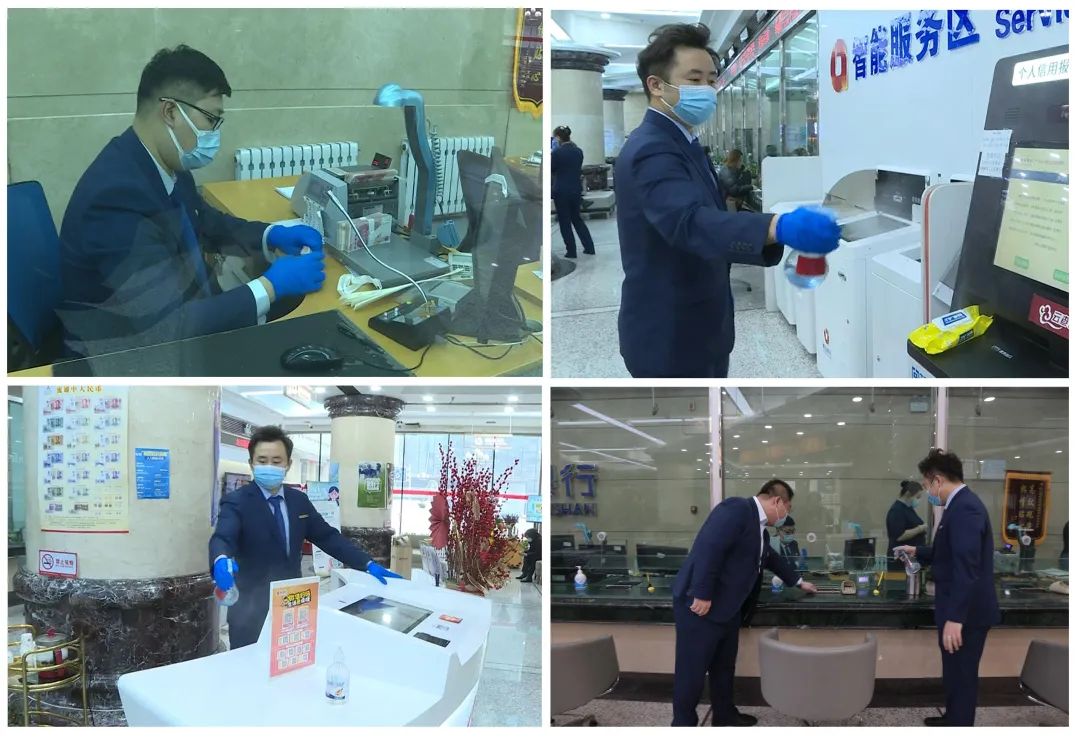 加强防疫物资储备。为营业网点配齐配足口罩、手套、消毒水、体温测试仪等安全防护用品,为防疫工作提供坚实的物资保障。每日对进入厅堂人员进行体温检测、扫健康码,加强外来人员信息登记。做好营业厅及办公场所的消毒通风,安排人员对等候区座椅、柜台、自助设备等设施进行全面清洁消毒。严格执行现金消杀制度,实行现金“收支两条线”有关规定,全程做好现金消毒工作。