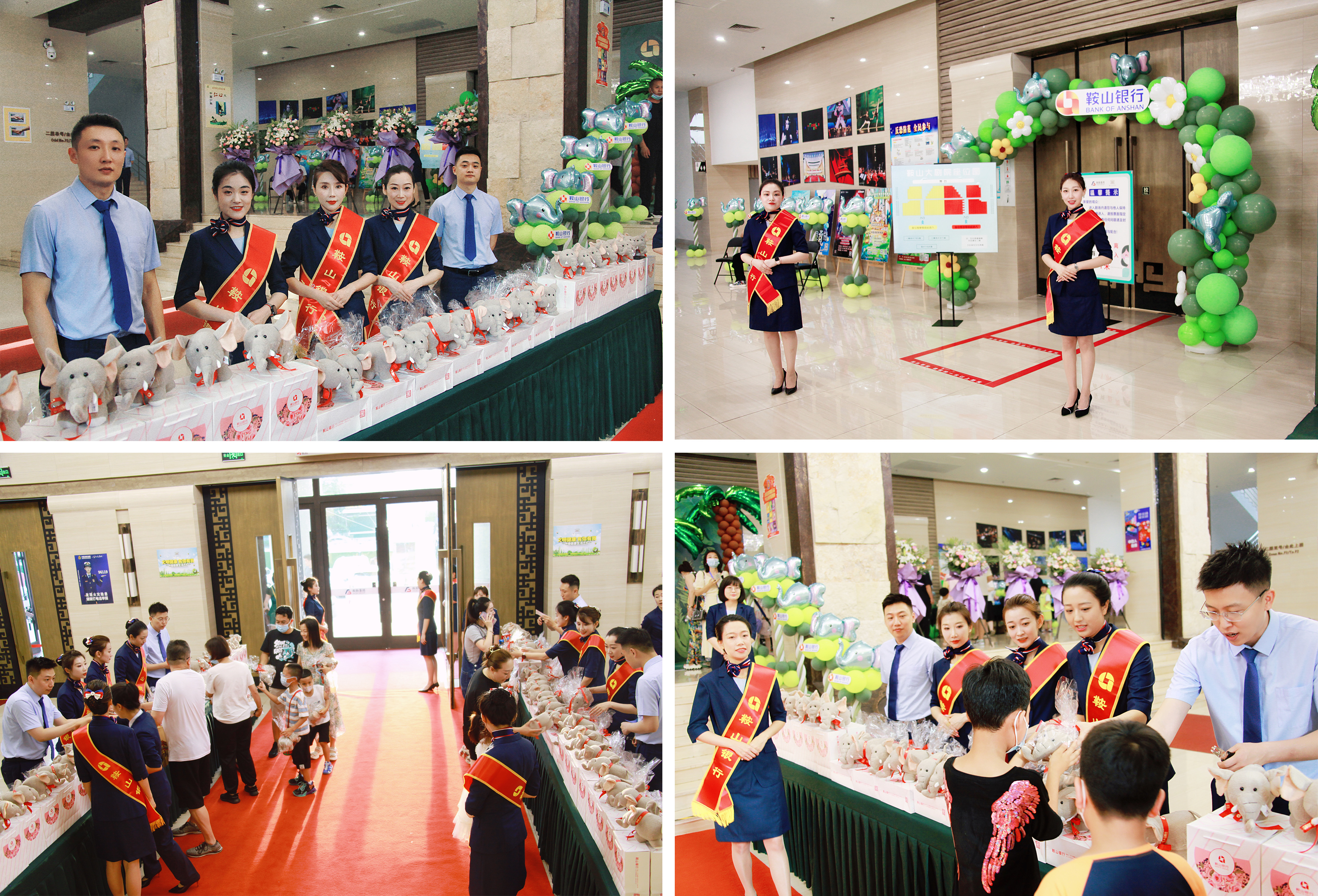 当天,鞍山银行在演出现场布置创意互动区,吸引不少小朋友打卡留影,门口处巨幅海报、“大象”卡通玩偶、气球拱门、鲜花长廊等众多细节布置,营造了生动活泼、轻松欢快的现场气氛。